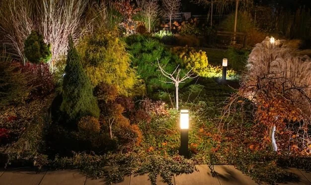 Accent Lights add drama and visual interest by highlighting trees, architectural details, or water features. These fixtures create depth and ambiance that makes your property stand out.